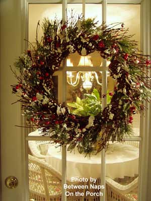 As I am hanging them I am thinking: "do I hang them inside or outside this year???" And in hanging them outside do I hang them high or low. I have done it both ways.